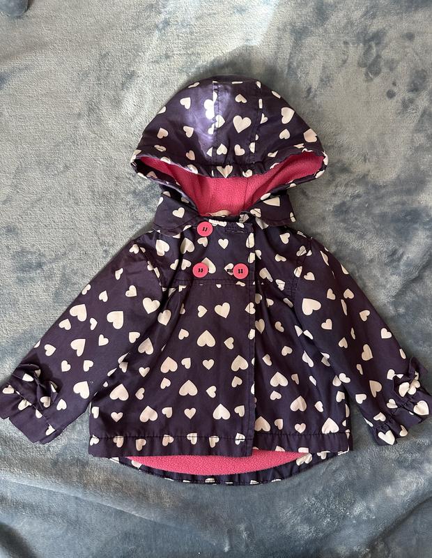 Вітрівка синього кольору з білими сердечками, утеплена