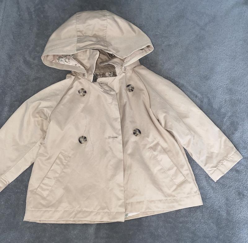 🌸Світла демісезонна курточка для дівчинки, розмір 9-12 міс. 👶 підійде на 1,5 рочки 🌸Має капюшон, зручну застібку на гудзики та дві кишеньки. 🌸Легка, комфортна та стильна, добре підійде для прохолодної весни чи осені. 🌸Універсальний колір, який легко поєднується з будь-яким одягом.