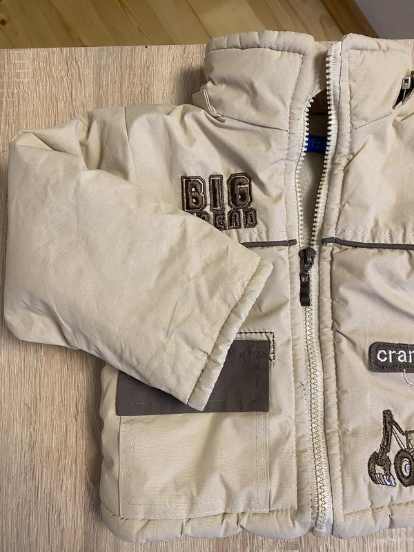 Тепла, зручна та дуже мила курточка з вишивкою “BIG TREND” та трактором — дитині точно сподобається! Внутрішня частина — м’яка байка, добре тримає тепло. • Колір: беж з темно-коричневими вставками • Стан: хороший (є сліди носіння, на фото видно) • Без плям чи дірок, застібка працює • Рукави можна підвертати • Ідеальна на осінь або теплу зиму Львів, відправка будь-якою поштою.