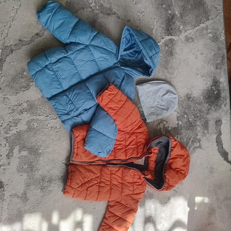 блакитна куртка сінсей в ідеальному стані, одягав разів 5, на теплу осінь. помаранчева куртка зара на холодну погоду, дуже затишна , тепленька, є дефект , на кишені відпала кнопка. шапочка в подарунок. заміри на фото. є можливість придбати окремо, по 250 грн і 285 грн