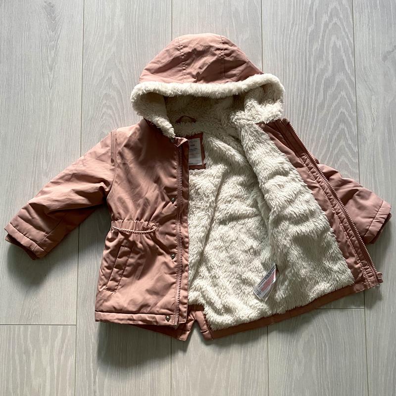 Стильна та зручна подовжена куртка Primark 🌸 👧 Розмір: 18–24 міс, зріст 92 см. Подовжений крій: довжина позаду 44 см, попереду 38 см. Капюшон незйомний, пояс регулюється куліскою. Рукава з манжетами (31 см + манжет 4 см) для захисту від вітру. Дві бокові кишені, застібка-блискавка + кнопки. Напівобхват грудей — 35 см. Курточка виглядає дуже мило й практично — тепла та комфортна для прохолодної погоди ✨