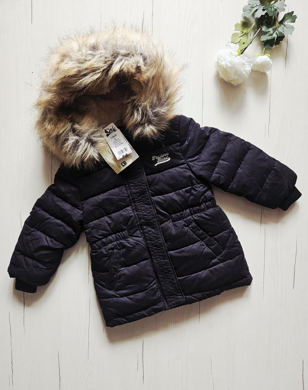 Куртка зимова для дівчаток 86см, пух+перо, франція, 12-24місяці, парка дитяча демісезонна,...