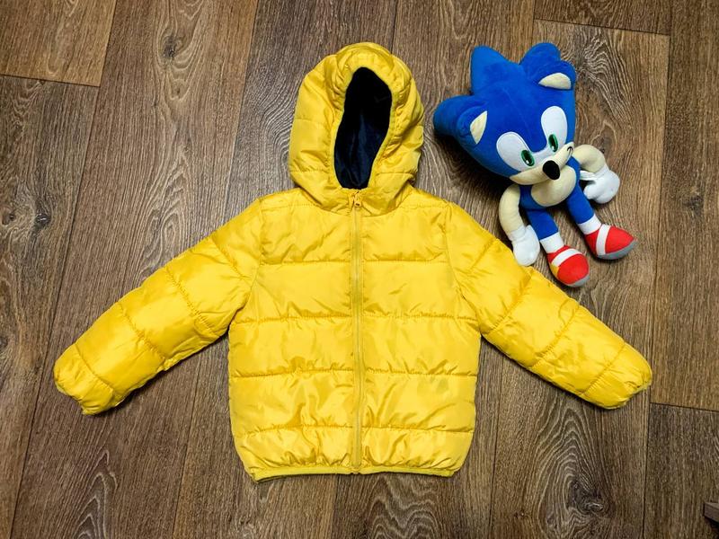 Куртка дитяча демісезонна. Підійде на холодний вересень, жовтень, теплий квітень та травень. Легко переться, дуже швидко висихає. Свіжі плями можна витирати навіть просто вологою серветкою. Розмір: 92 см. Колір: жовтий, підкладка - синя.