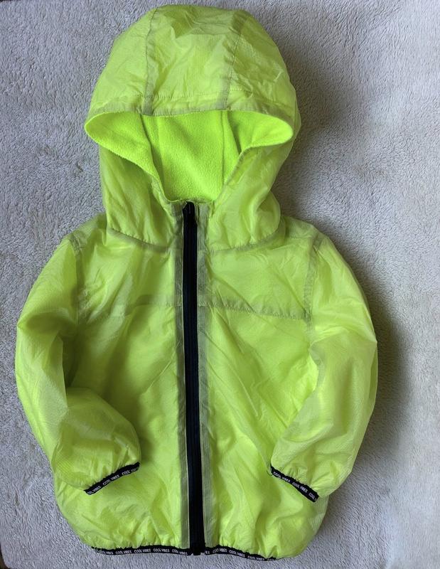 вітрівка Next розм 12-18 міс, верхній матеріал напівпрозора плащівка, підкладка тонкий м'який мікрофліс, стан новий, без паперових бірок. виміри: довжина 36 см рукав від плеча 28,5 см, ширина по грудях 33 см, плечі 26 см