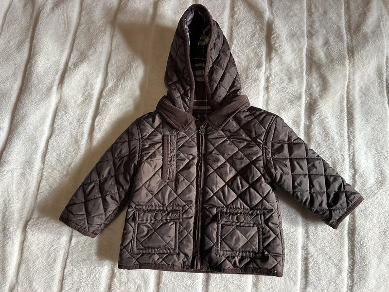 Дитяча куртка коричневого кольору, бренду Marks&Spencer. Для дітей віком 6–9 місяців, вагою приблизно 9 кг та зростом 72 см.