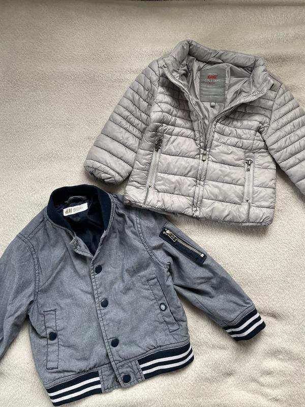 Легкі весняні курточки, розмір сірої 80 см Джинсової 92 см Стан хороший, плям нема