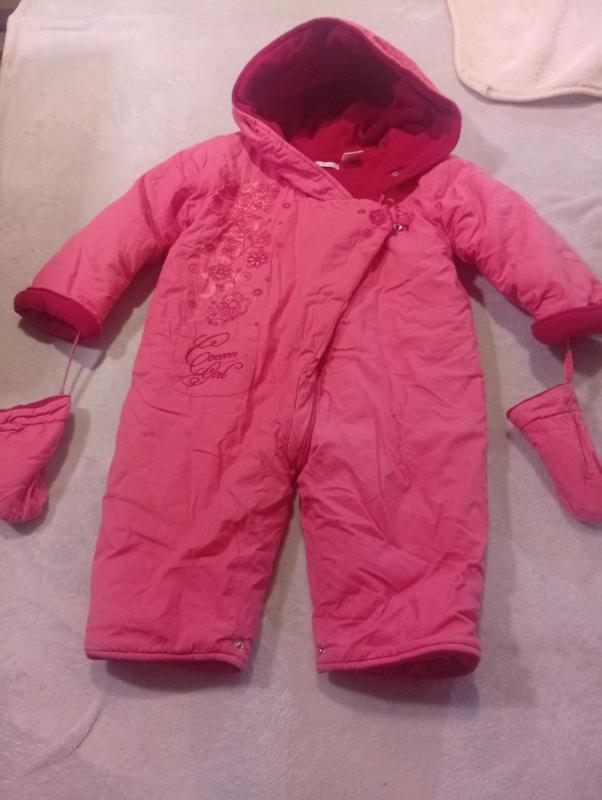 Дитячий комбінезон на дівчинку рожевого кольору в комплекті рукавички