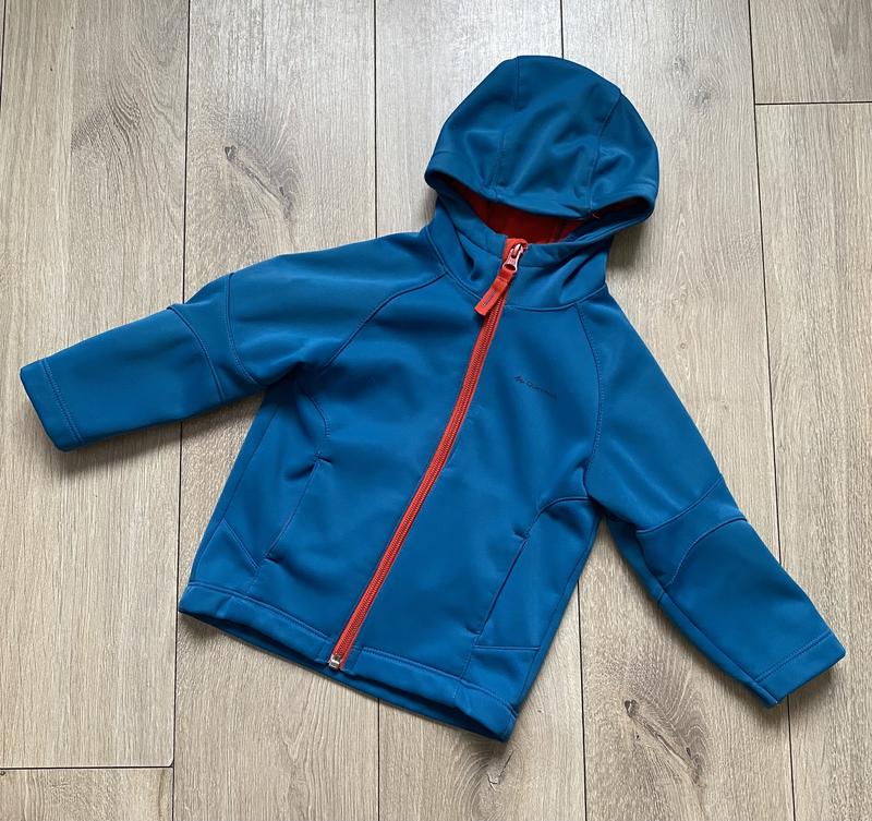 Куртка софтшелл Quechua на зріст 86-92 см в дуже хорошому стані. Є декілька затяжок і спереду плямки світлі (на фото показала). Колір камера не зовсім передала, курточка більш зеленого, а не синього відтінку. Краще підійде на худеньку/середньої повноти дитину. Заміри: довжина 37, ПОГ 30, рукав від горловини 35.