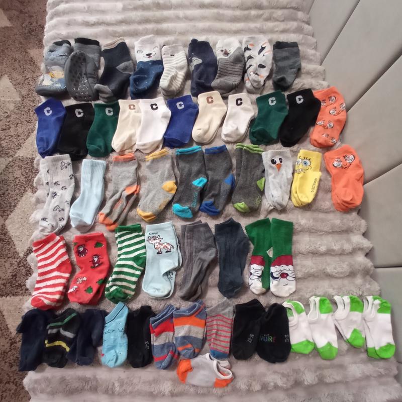 Детские носички для мальчика,можно и на девочку,51 пара.Стан Очень хороший, не заношенные и не застеранные.Некоторые в катушках, легко убрать машинкой от катишек.Без дырок и дефектов.Есть очень теплые,Одна пара с антискользящей подошвой (как тапочка для дома). Длинные, средней длины, короткие и укороченные.Подойдут на от 3 до 5 лет, удивляясь какой у ребенка. ножка.Если по размерам от 29 до 31.Нижний ряд короткие и укороченные.Цина за все 250.Если Укрпочтой то только полная оплата.