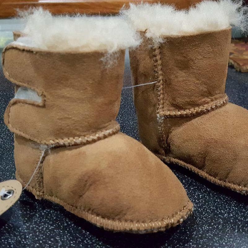 Продам оригинальные новые пинетки Ugg Australia из натуральной замши на натуральной овчине. Размер по бирке 0 -3 месяца, длина стельки снаружи 12 см, на ножку 10 -11 см. Одели один раз для примерки. покупали для себе через интернет, не подошли по размеру.