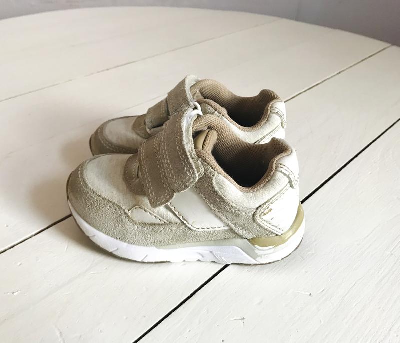Замшеві кросівки на дівчинку/хлопчика. Дуже зручні. По устілці 14см. Є нюанс на п'яті, при носінні не помітно. Пересилаю.