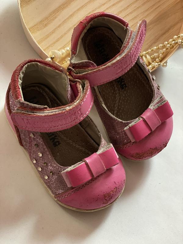 Шкіряні ортопедичні босоніжки Шалунішка на дівчинку, розмір 18. По устілці 12 див. Липучки в ідеалі, передки збиті, ніжку тримають ідеально і взувати легко.