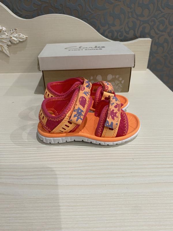 Босоніжки clark's Дитячі текстильні сандалі з гумовою підошвою. Легкі і гнучкі з подвійним кріпленням tape rip для зручного фіксування дитячої ноги Розмір 22 ( довжина устілки 14см ) Нові в упаковці Торгу немає . Відправка новою поштою , укрпоштою щодня