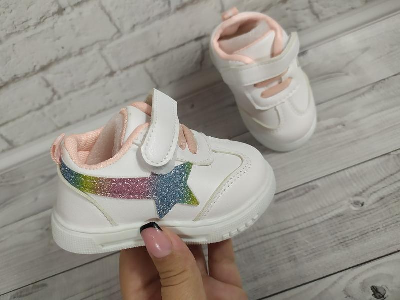 Дуже гламурні кросівки 💙 💧Блистять на сонці 💧Застібаються на липучку 💧Присутні шнурочки-резинки 💧Для самих маленьких крох 💧Всередині плотний текстиль 💧 Матеріал -Екошкіра 💧Гарний вибір на осінь * 💧Без супінатора !!! Розміри: 15-11 см 5 шт 15-11,5 см 5 шт 16-12,3 см 5 шт 17-12 см 5 шт 18-12,5 см 5 шт 19-13 см 5шт
