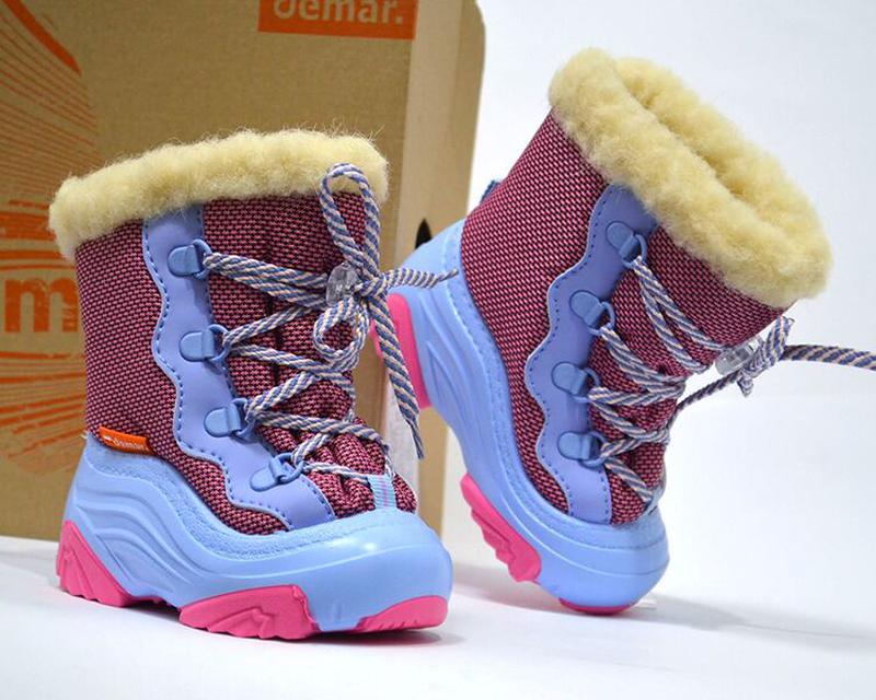 Дутики DEMAR SNOW MAR рожеві (Польща) Верх - непродуваємий, водовідштовхувальний, зносостійкий текстильний матеріал. Підкладка - натуральна набивна овеча вовна. Підошва - термопластична резина, зберігає гнучкість і еластичність при низьких температурах. Теплі і легкі. Підійдуть на ніжку подъемистую повну. 20-21р. за устілці 13,5 см 22-23р. по устілці 14,5 см