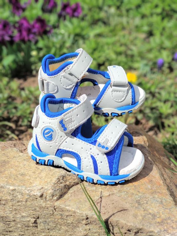 💙 Відмінна модель для маленьких ніжок! Симпатичні босоніжки в спортивному стилі! Верх екокожа і текстиль, устілка з натуральної шкіри з супінатором. Легкі, гнучка підошва. Твердий задник, дві липучки забезпечать відмінну фіксацію на ніжці з будь-яким піднесенням🤗 ⠀ Розміри і виміри устілки (від краю до краю): ⠀ 18 /11,2 см 19 /11,7 см