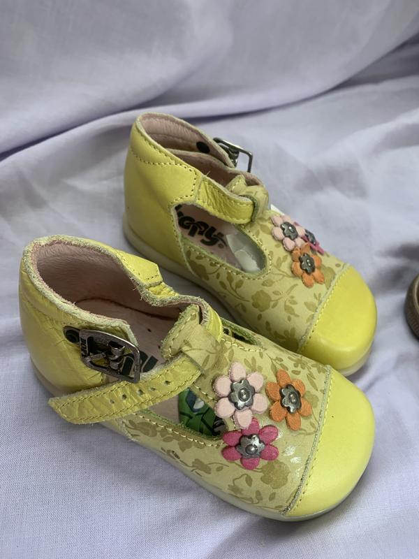 Шкіряні туфельки для маленької принцеси 19 - 20 розмір, на худеньку ніжку. Привезені з Бельгії дідусем, але ми так і не одягнули їх.фіксована п'ята. Антиковзка підошва.
