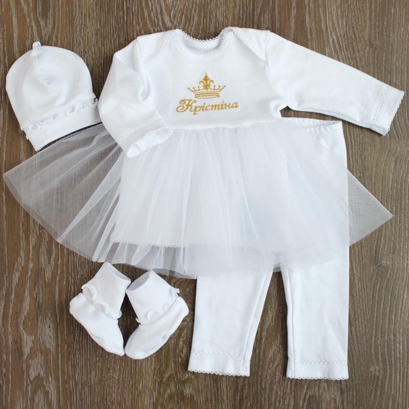 Комплект для хрещення дівчинки з вишитим іменем, білий від 850 грн