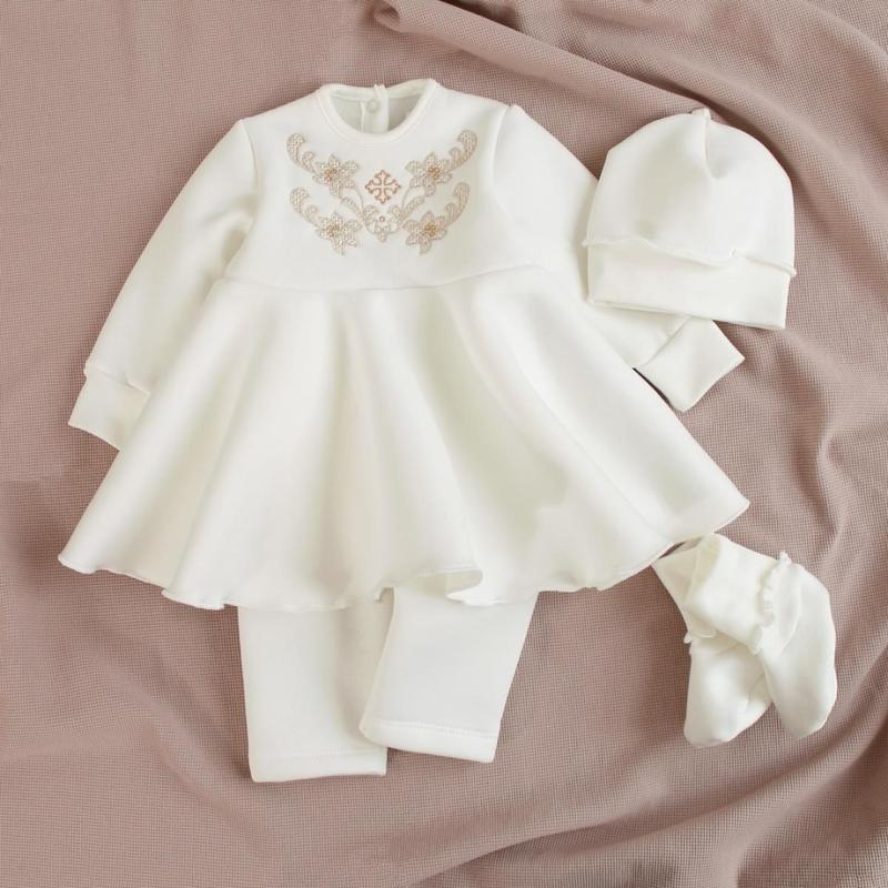 Комплект з платтям для хрещення дівчинки утеплений молочний від 830 грн