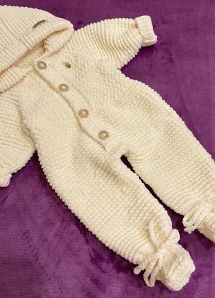 Комбинезон вязаный, удобная работа. Размер 0-3месяц