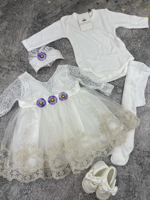 Набір для дівчинки святковий комплект для хрещення і виписки комплект 0-4 місяці 4 предмет...
