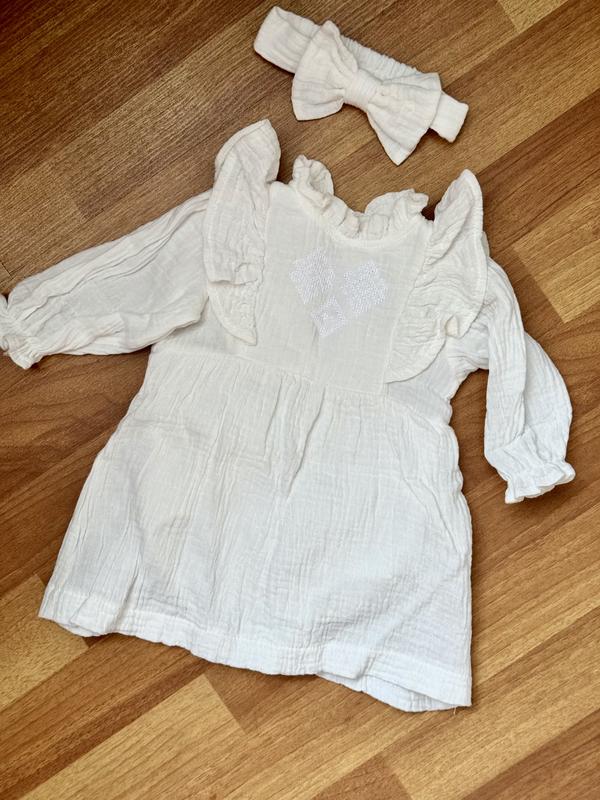 Сукня-боді з мусліну та повʼязочкою. Вишивка орнамент. Легка, ніжна та красива. Одягнута була всього дві години, в ідеальному стані Розмір 62
