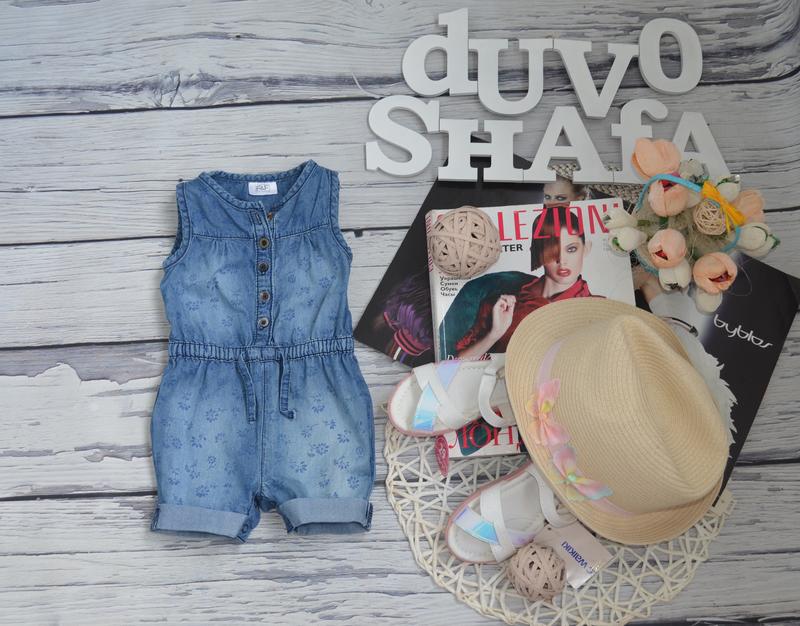 6 - 9 місяців 74 см фірмовий джинсовий комбінезон ромпер дівчинці квіти
