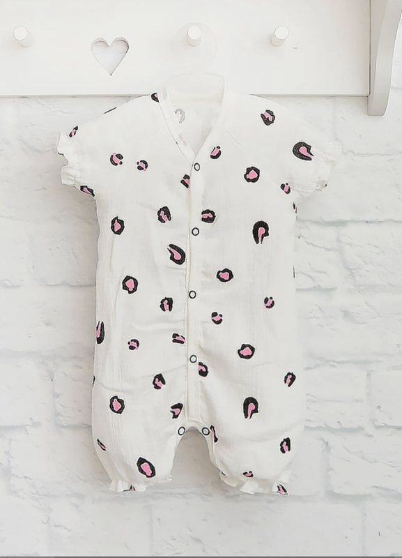 Пісочник/ромпер з мусліну дітям ТМ Blanka молочний,абстрактний, 100% бавовна/муслін, всесезонний, розмір на бірці 26 (6 міс.-12 міс.), напівобхват грудей 28 см, довжина спинки (до памперсу) 44 см