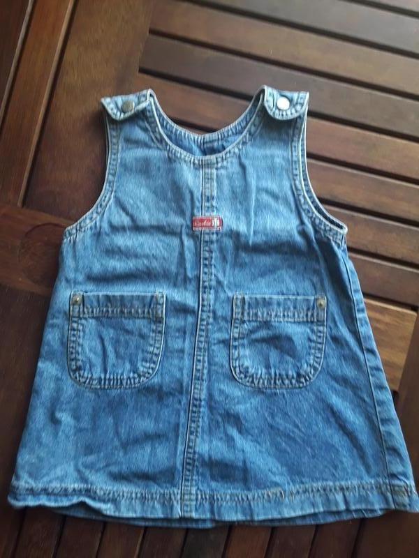 Матеріал тонкий джинс, м'який. Застібається на плечах кнопками. Розмір 74 Довжина 43, ширина під проймами 29. Без дефектів.
