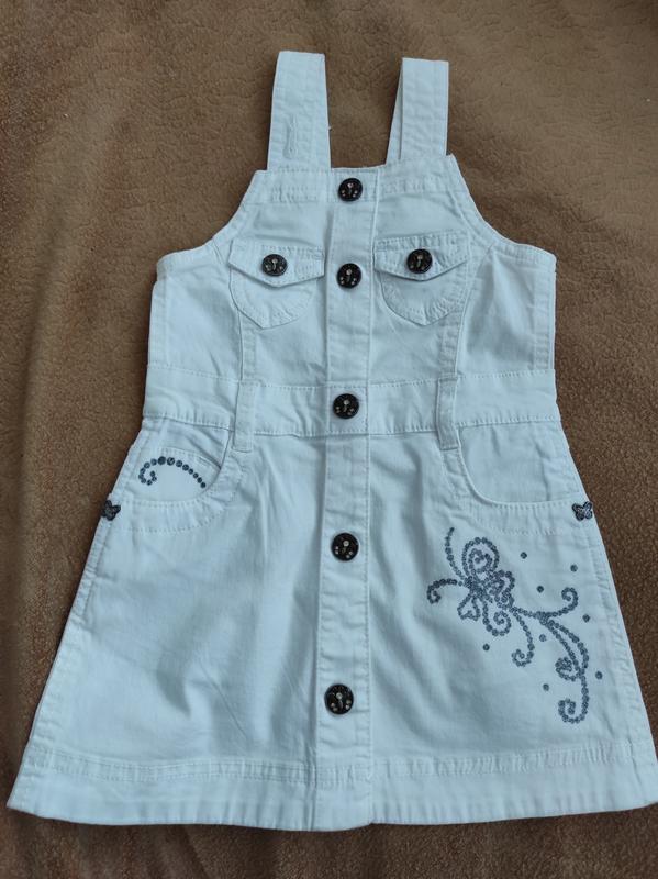 Сарафанчик коттоновий, літній, з аплікацією, в ідеальному стані. Довжина - 47 см Пог - 25 см Довжина спіднички - 25 см