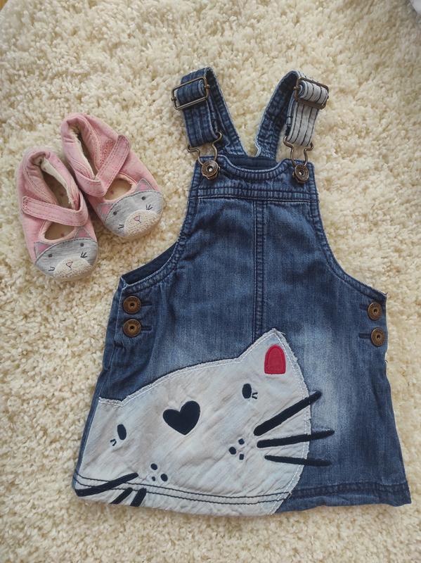дуже гарний стан, без плям та дир,розмір 9-12 міс, під сарафан маю ще босоніжки (ті що на фото) з резиновою підошвою які ідеально під сарафан підійдуть (вчились ходити в них) загальна довжина 44см (може бути і менша, шлейки регулюються), ширина в районі талії над гудзиками 26см. бірку обрізала (дитині заважала)