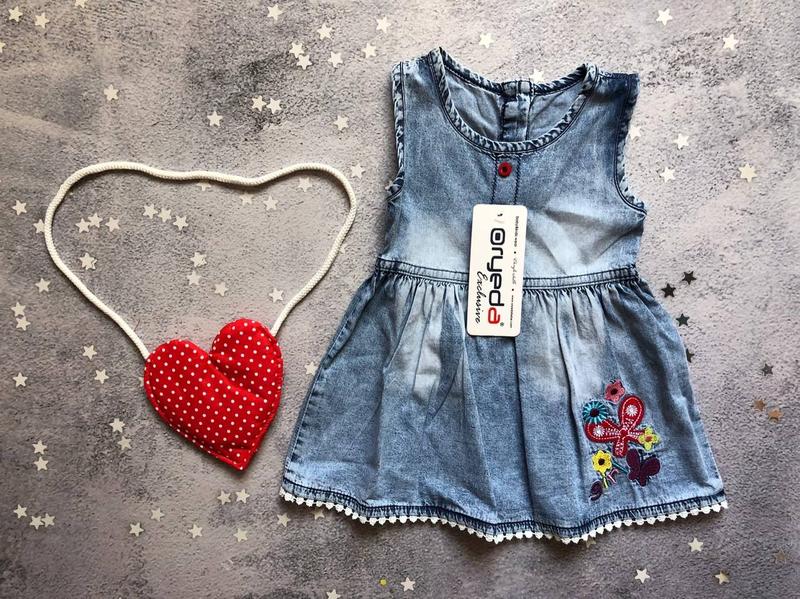 Класний комплектик для ваших👑👑 Турція✈️✈️100%kotton Джинсовий сарафанчик ззаді на гудзичках+сумочка(тканинна) Заміри✔️ Довж плаття/ширина 68(6міс)-37.5/23-1шт 74(9міс)-39/24-1шт 80(12міс)-42/26.5-1шт 86(18)-43.5/27-1шт