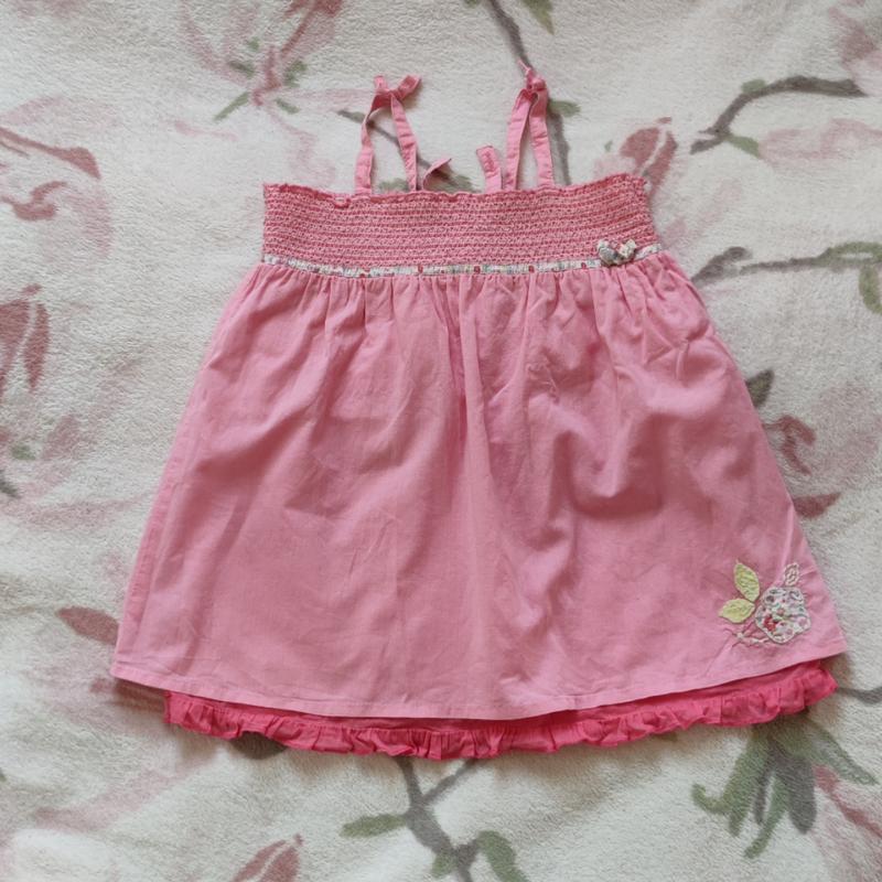 Гарний сарафан з найлегшого бавовни, є подьюбник. Стан хороший, єдине - потягнулися трохи резиночки на топі, стали не такими тугими. Плям і дірок немає. Підійде на вік до 1,5 років.
