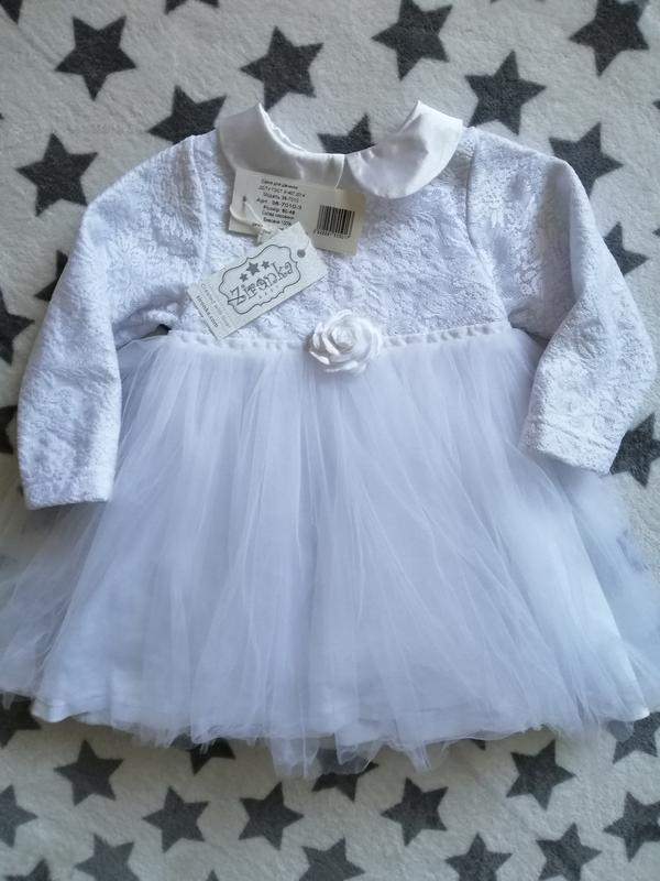 Нарядное платье от бренда Зиронька, состав 100% котон, сверху гипюр, атласный воротник, два слоя фатина, два слоя подкладки, внутри хлопоковая подкладка по всему платью и в рукавах, на фото показала, застежка потайная молния. Цветок на булавке, можно отстегнуть. Выглядит очень красиво, ваша принцесса будет самой красивой на празднике. Одели один раз. Состояние идеальное.