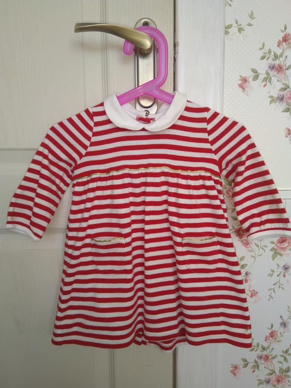 Трикотажне Плаття у відмінному стані, спереду дві кишеньки, на спинці кнопочки. Ріст 74см, при потребі зроблю заміри.