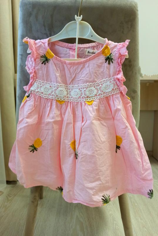 Дуже класне платтячко, натуральна тканина, з білим мереживом і вишитим орнаментом ананасиками, для маленької принцеси на літечко. Легеньке Платтячко як пір'їнка, не парити коли жарко. Розмір на 12 міс (точно буде надовше, є заміри, дивіться). Стан - ідеальний. На фото плаття потребує розпрасування