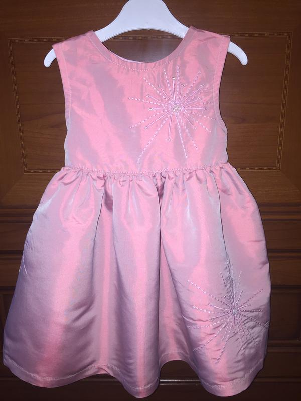 Нарядное платьице для малышки 6-9 мес. Вшитый поясок сзади завязывается на бантик. Состояние идеальное. Длина 45см, пот 24, ширина в плечах 21. Ткань чайно-розовая но переливается разными оттенками (хамелеон). Спереди, сзади и сбоку вышивка -снежинки. Оплата на карточку Приватбанка. УП по тарифу стандарт.