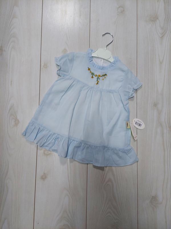 Натуральне плаття на підкладці у світло блакитному кольорі. Склад: 100%-котон. Розміра в наявності: 6-9m. 9-12m.