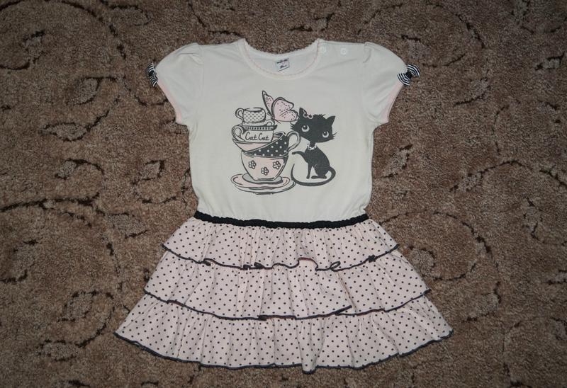 Летнее платье для девочки Wojcik. Размер 86. Состав ткани: 92% хлопок; 8% эластан. Состояние - очень хорошее. Покупали новым, носил только наш ребёнок. Замеры: Длина 45 см ПОГ 27 см Длина рукава 9