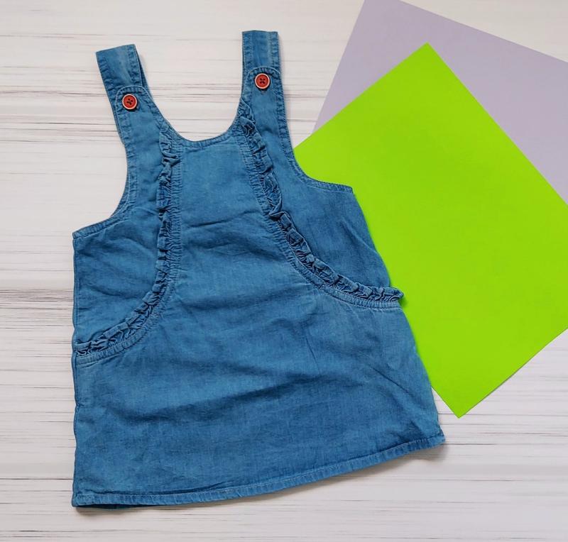 Джинсовий сарафан для дівчинки,тканина легенька ,є з боків кишені,лямки що регулюються на два гудзики, Польща Склад:100% бавовна Колір:блакитний Код:CCG1805253 Розмір:80 див.