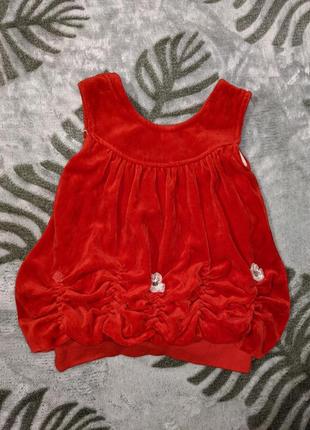 Платье красного цвета с цветочками, единственный минус - нет одного цветка.