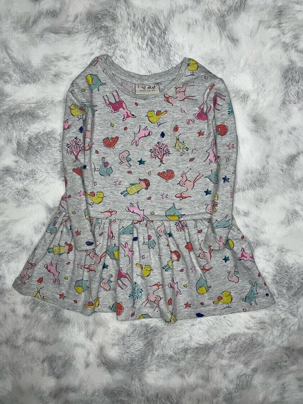 Котоновое платье с рукавом. Состояние отличное без дефектов 12-18 мес Некст длина 44 (26). ПОГ 28. рукав 27.