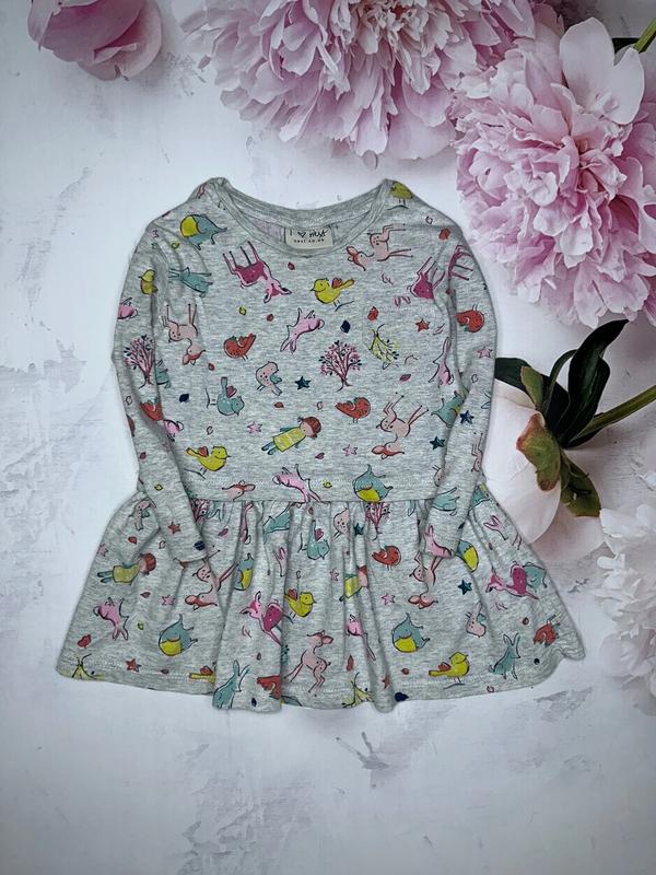 Котонове плаття з рукавом. Стан чудовий без дефектів 12-18 міс Некст довжина 44 (26). ПОГ 28. рукав 27.