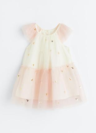 Платье из тюля H&M на 12-18 мес. на р.86. Платье из тюля Evasé с набивным рисунком. Модель с высоким вырезом горловины, круглым вырезом горловины с застежкой-каплей и пуговицей сзади у горловины. Короткие двухслойные рукава-бабочки и многоярусная юбка с оборкой по низу. Подкладка. Состав. Внешняя ткань: 100% полиэстер. Подкладка: 100% полиэстер. 12-18 мес. длина - 50 см, полуобхват под мышками - 29 см.