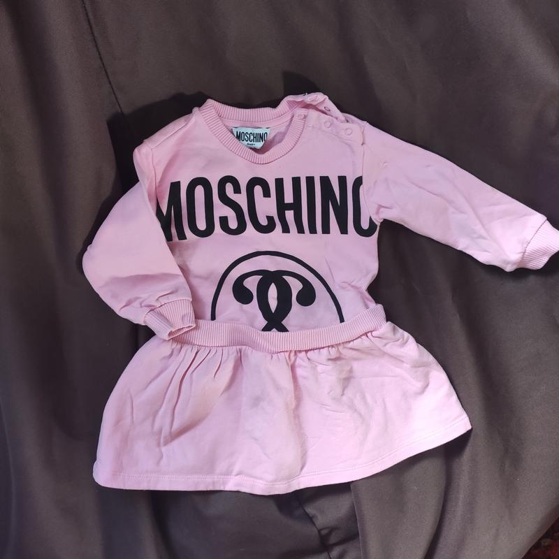 Рожева сукня Moschino baby з лого спереду. Сукня з круглою горловиною, має кнопки-застібки на плечі, резинку, спідниця кльош. Сукня тепла, на тонкому флісі. Бренд: Moschino baby Розмір: 9-12 місяців / 80 см Склад: 96% бавовна / 4% еластан Стан: ідеальний Заміри: Рукав - 24 см Довжина - 40 см Довжина під рукавом і до низу - 28 см Напівобхват (там де резинка) - 26 см