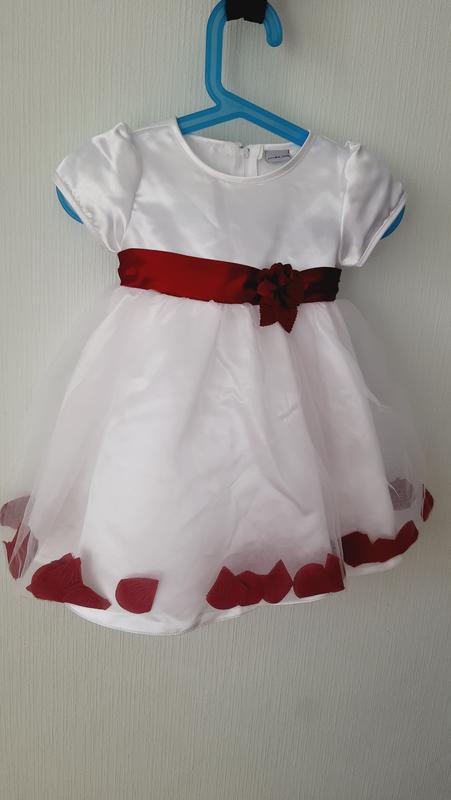 В ідеальному стані сукня на маленьку принцесу 12-18міс. Довжина по спинці до низу плаття 44см, ширина під пахвами 25см. Стан нового. Спідничка складається з чотирьох ярусів, дуже пишна.