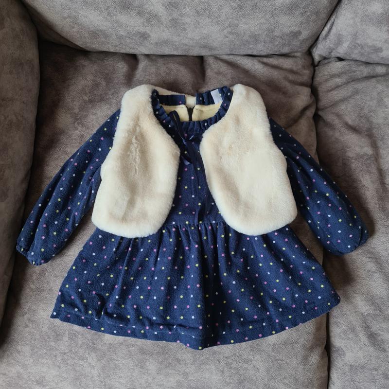 Дуже милий комплектик, тепленька сукня + жилетка. ▪️12 міс; ▪️довж - 40 см, рукав від плеча - 29 см; ▪️прикраса з жилетки знімається; ▪️стан: ідеал.