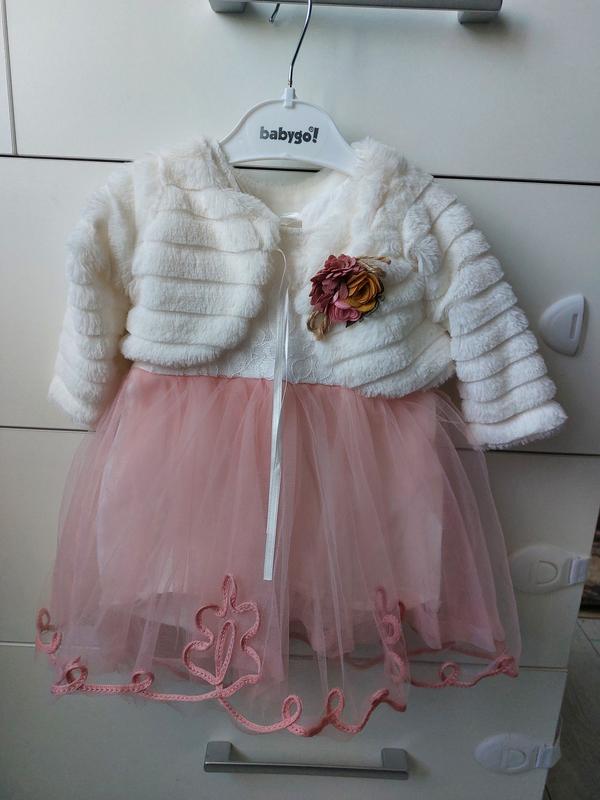 Платье на крестины или другое событие. Очень красивое. Внутри хлопковая подкладка по всей длине платья. Брошь с накидки снимается. Мы одевали на 6 месяцев на фотосессию. Но подойдет лучше на меньшую девочку. Смотрите замеры, детки разные)