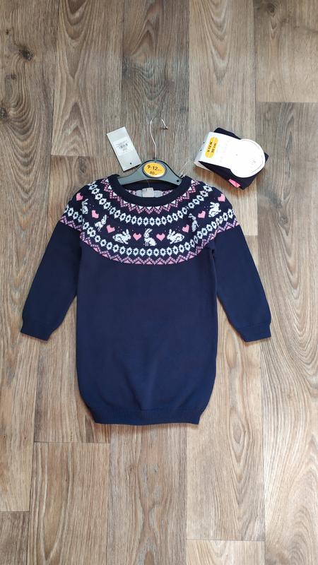 платье - туника в комплекте с колготками на 9-12 мес размер 80