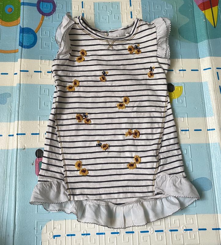 Плаття з вишивкою для дівчинки 3-6 міс. Next 8 кг 100 % бавовна В смужку з нашитими гладдю квітами